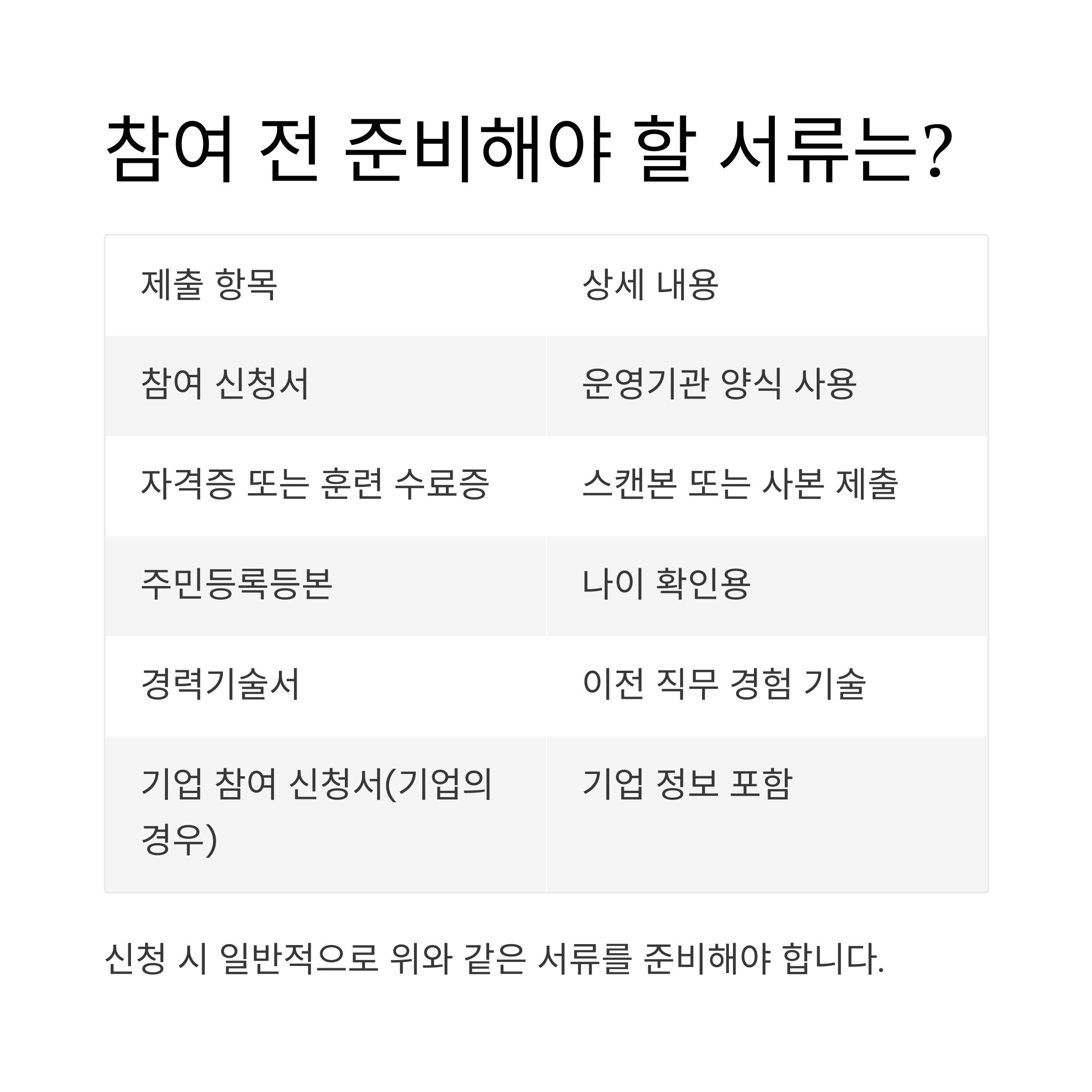 참여 전 준비해야 할 서류는?