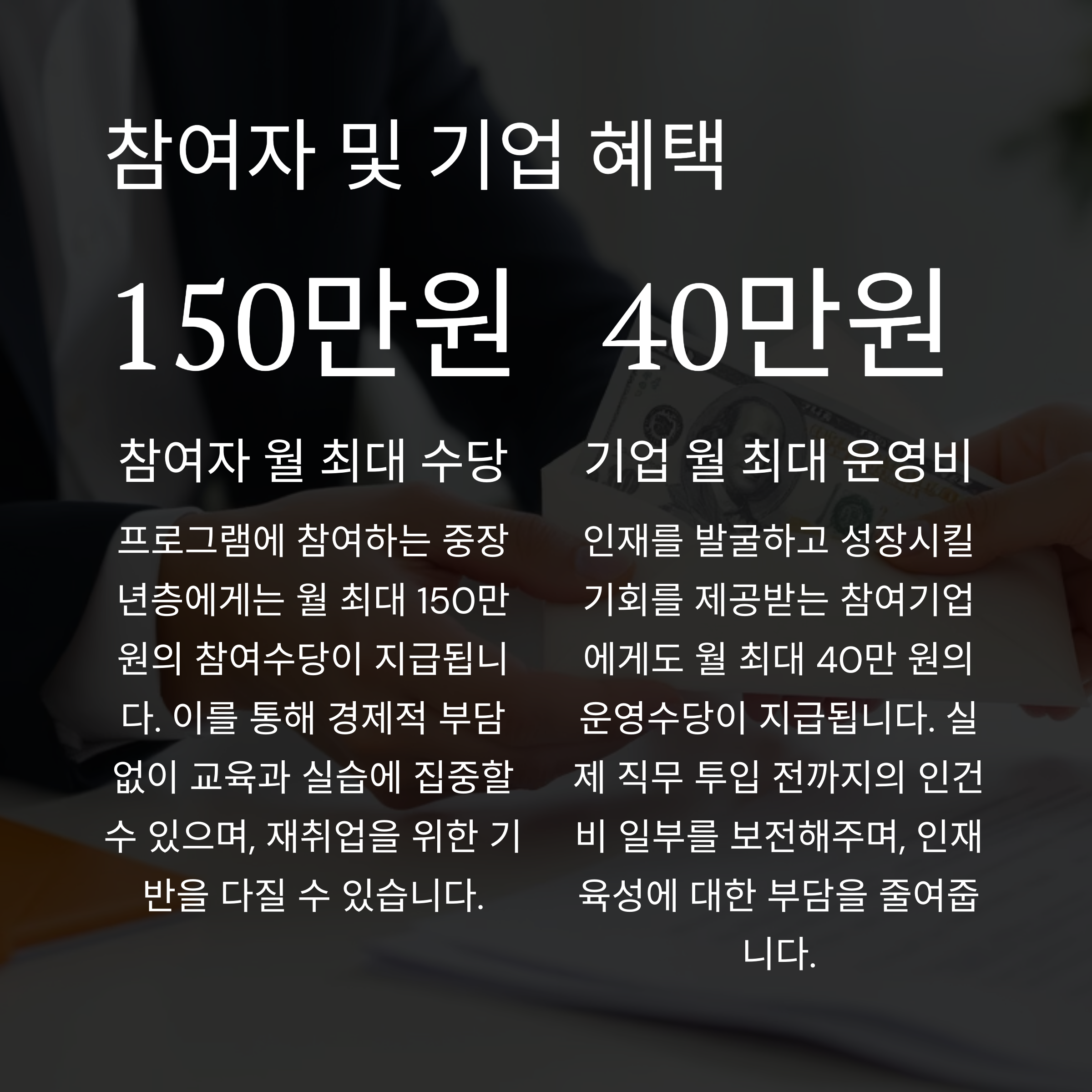 참여자 혜택: 월 최대 150만 원 수당