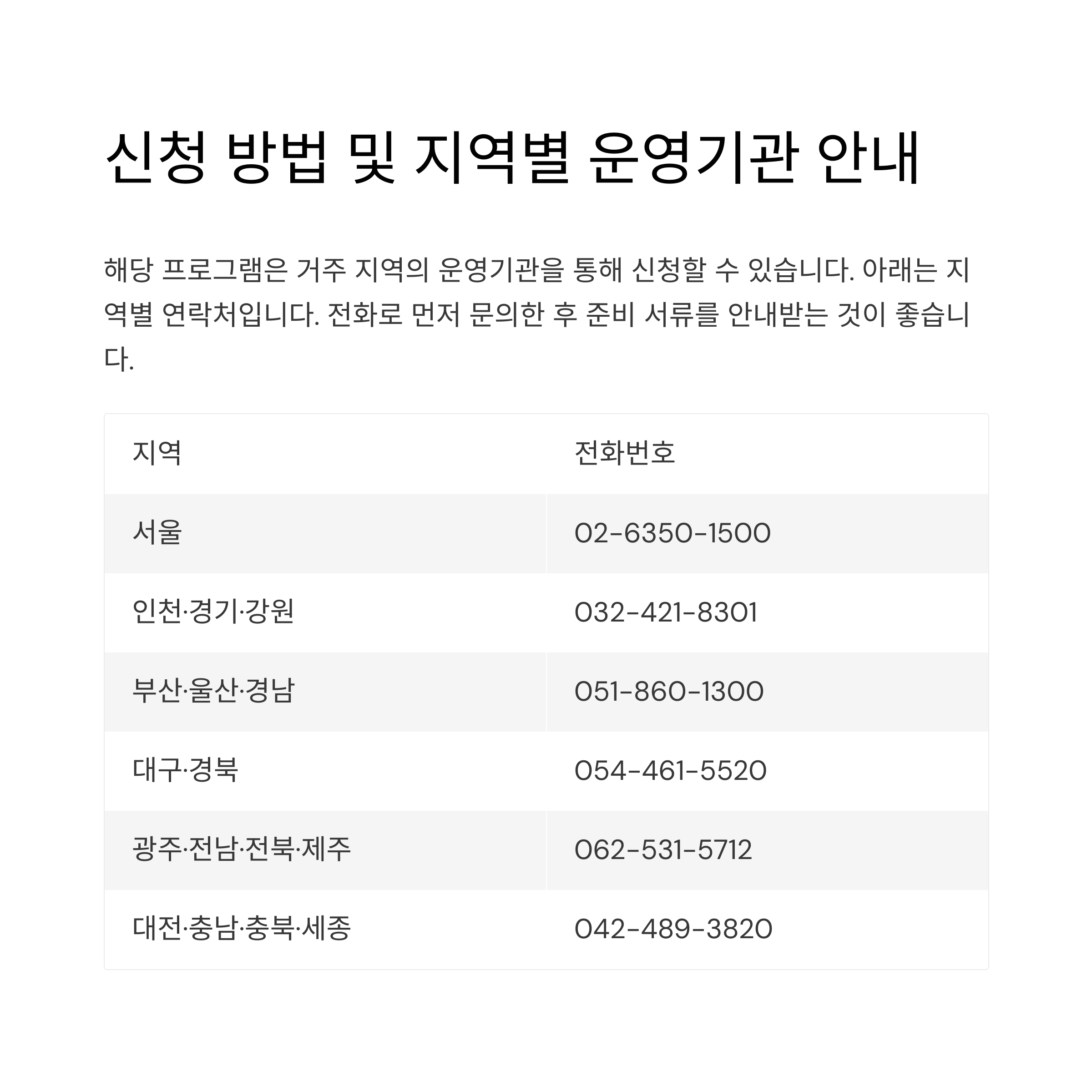 신청 방법 및 지역별 운영기관 안내