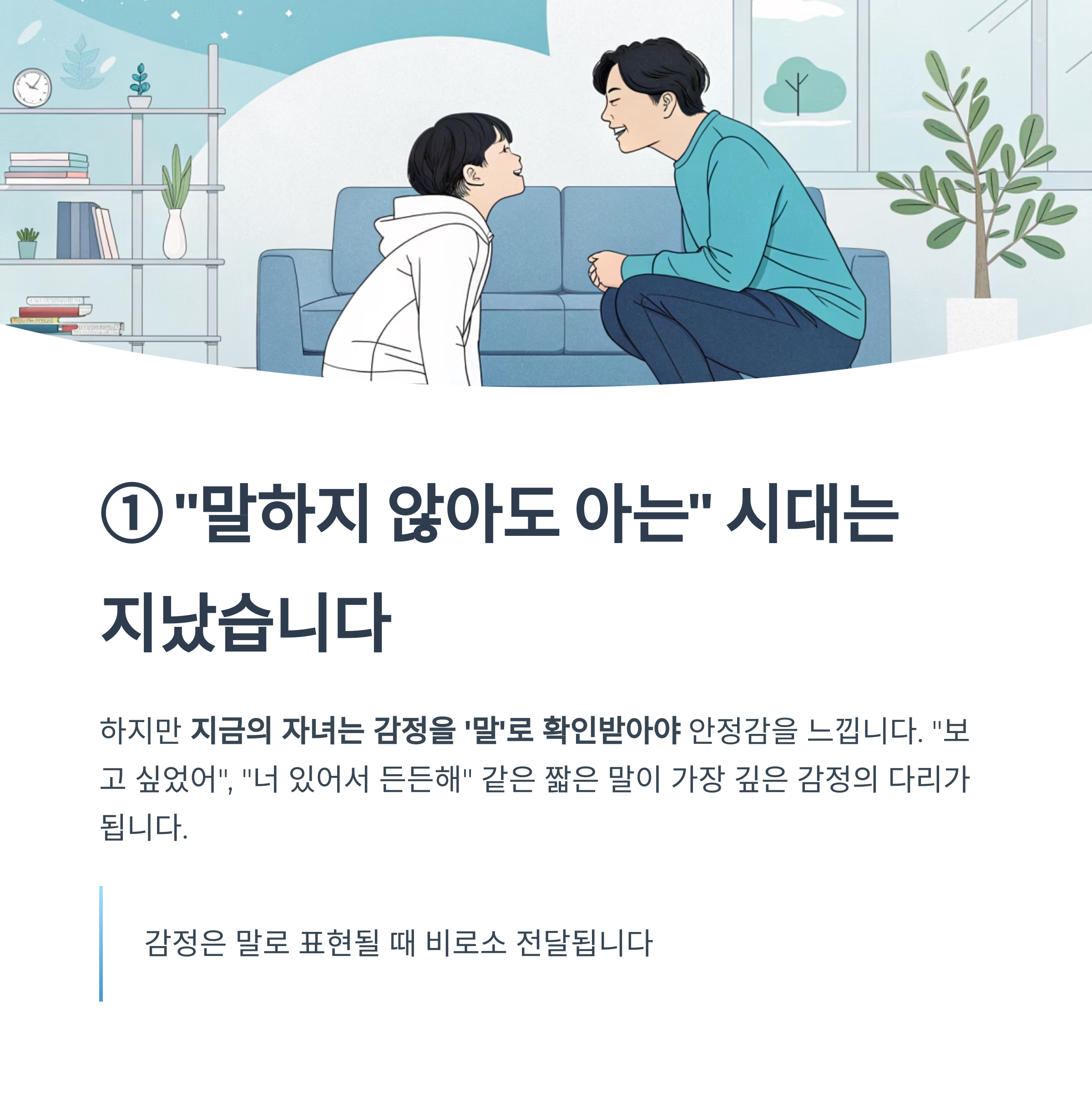 하지만 지금의 자녀는 감정을 ‘말’로 확인받아야 안정감을 느낍니다.