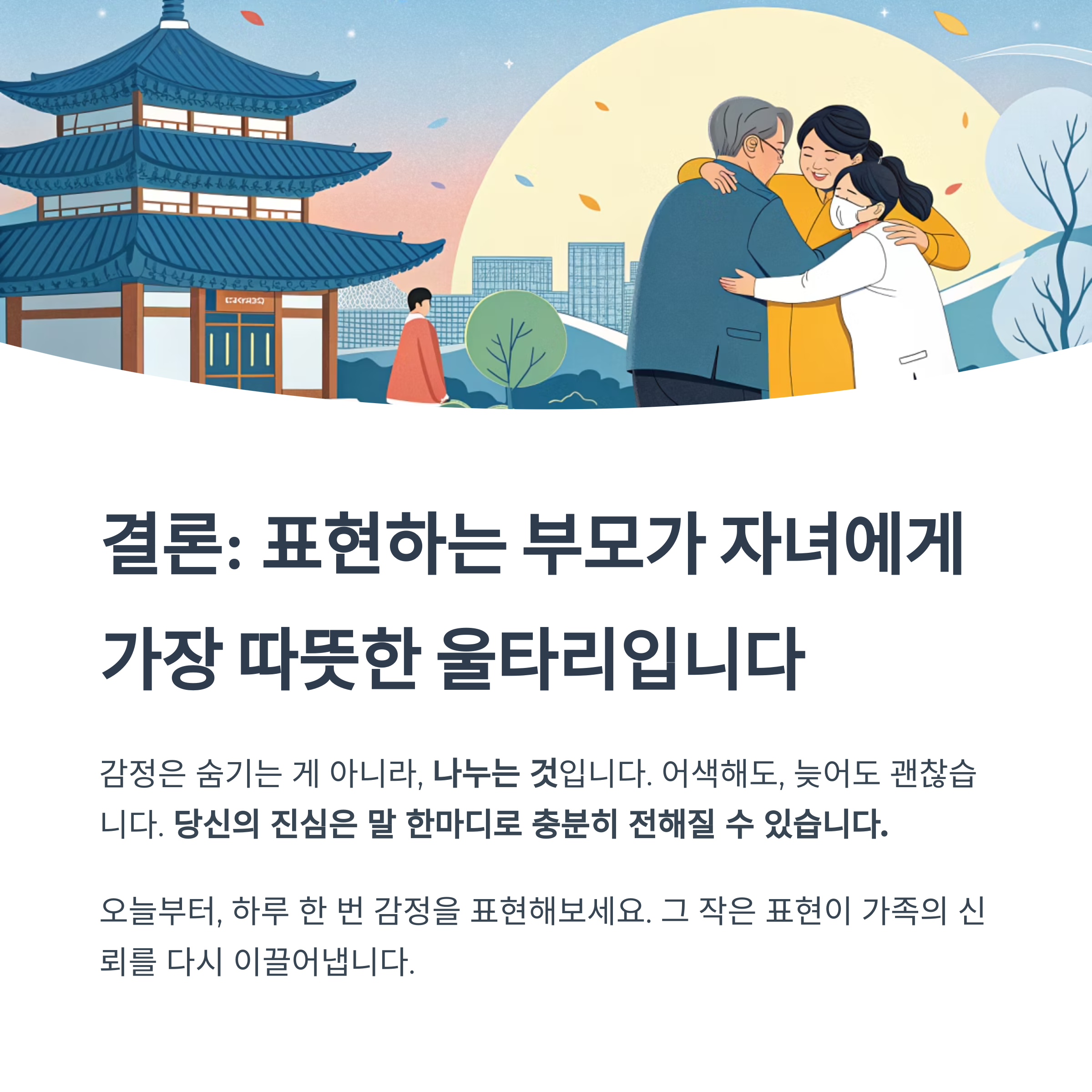 결론: 표현하는 부모가 자녀에게 가장 따뜻한 울타리입니다