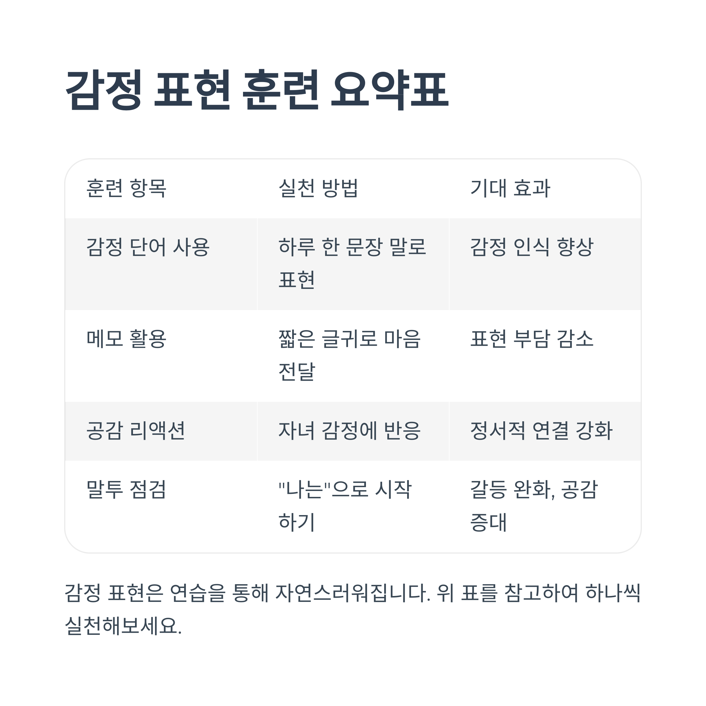 감정 표현 훈련 요약표