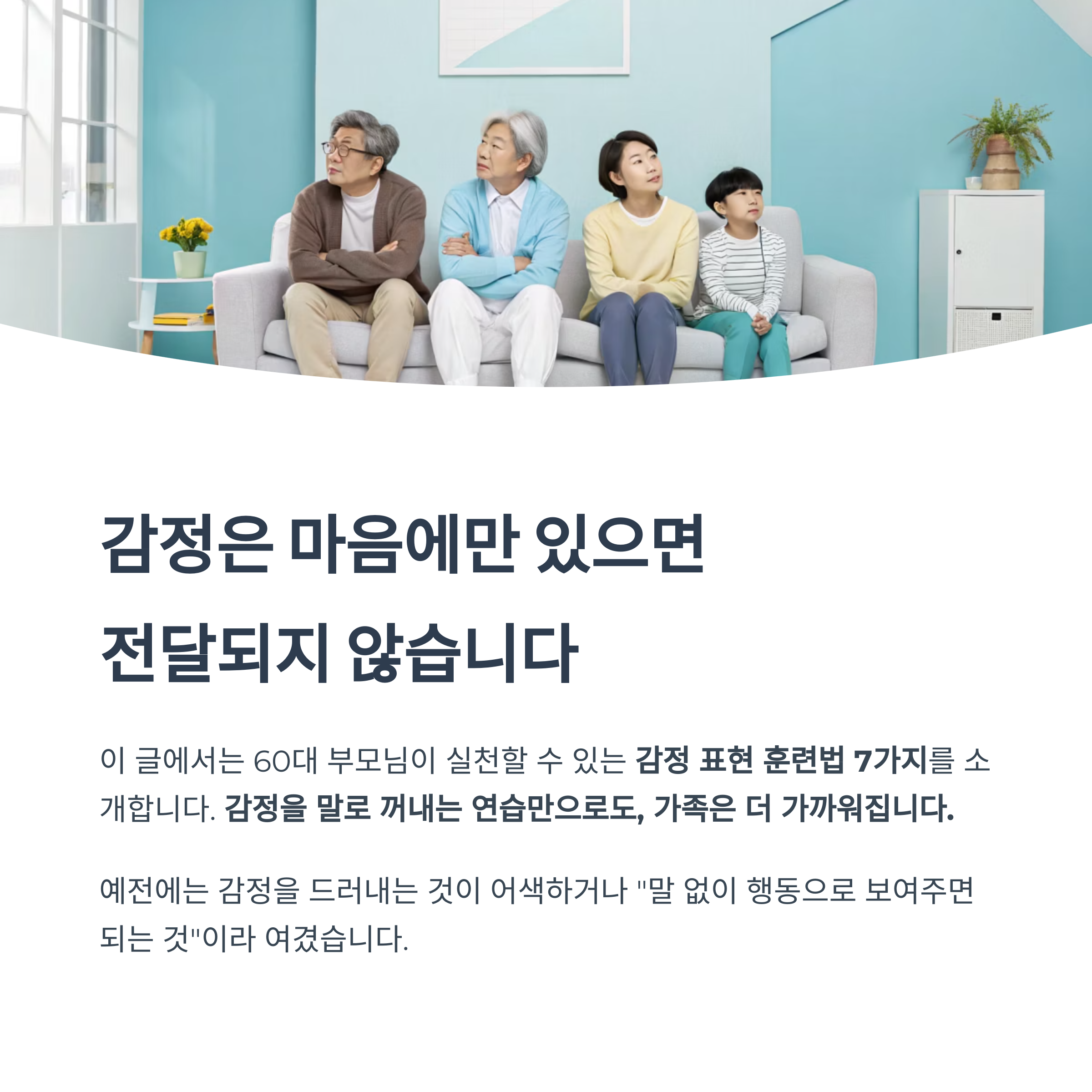 이 글에서는 60대 부모님이 실천할 수 있는 감정 표현 훈련법 7가지를 소개합니다.