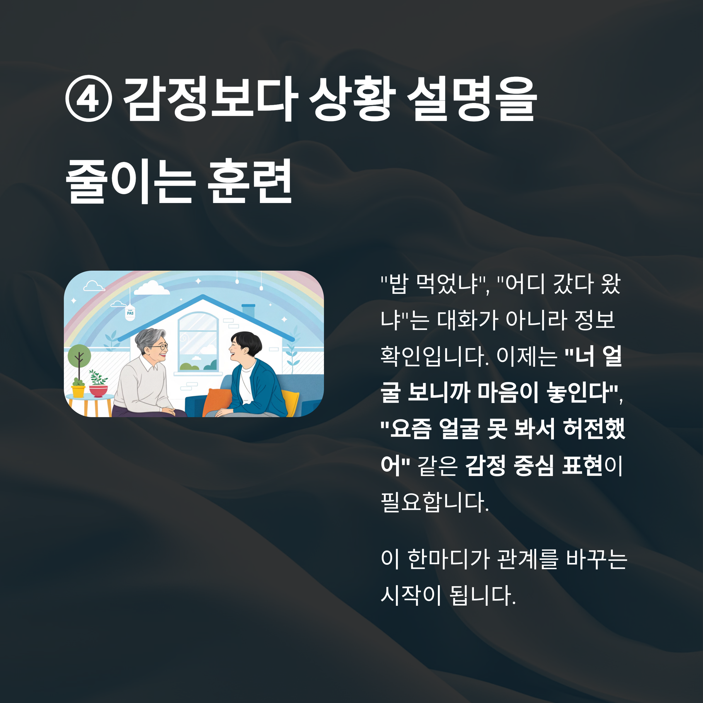 ④ 감정보다 상황 설명을 줄이는 훈련