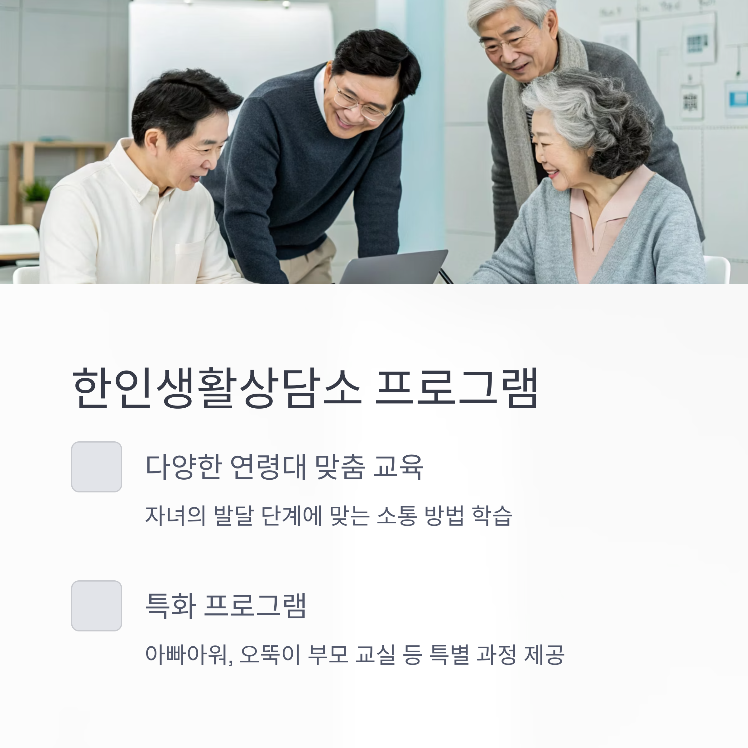 자녀와의 관계를 더욱 깊이 있게 만들고 싶은 60대 부모님들을 위해, 신뢰와 공감을 키우는 소통 중심의 교육 프로그램을 소개합니다.