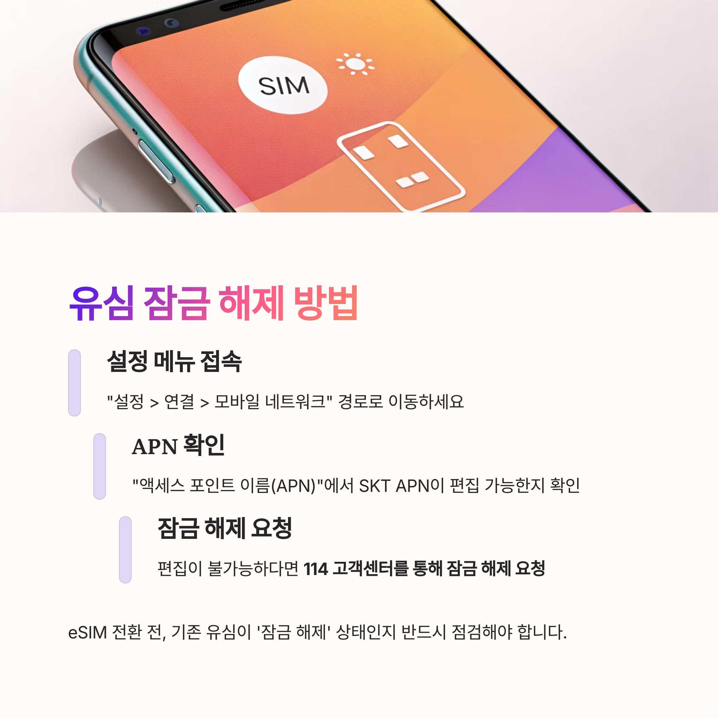 eSIM 전환 전, 기존 유심이 '잠금 해제' 상태인지 반드시 점검해야 합니다.