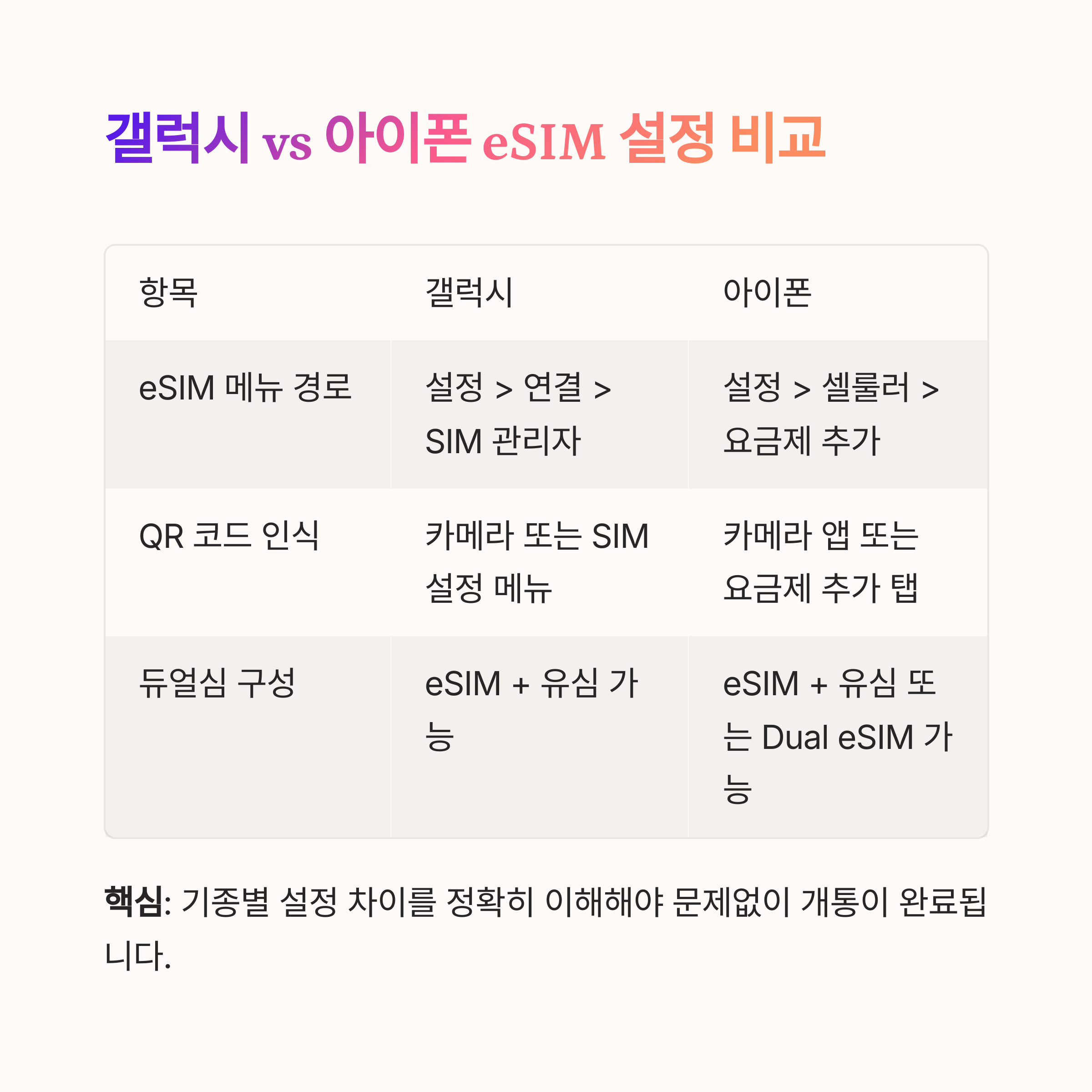 갤럭시 vs 아이폰: eSIM 설정 차이점은?